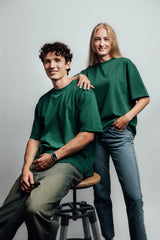 Trzy basicowe teesy – czarny, biały i butelkowa zieleń. Bawełna premium, robiona specjalnie na nasze zamówienie. To rzeczy, które nigdy się nie znudzą i zawsze będą fundamentem Twojej szafy.
